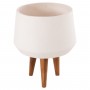 Η φαρδιά και ρηχή γλάστρα εσωτερικού χώρου (κασπό) QUAN είναι κατασκευασμένη από Fiber Cement σε ΛΕΥΚΟ χρώμα. Το ιδιαίτερο χαρακτηριστικό της είναι ότι συνοδεύεται και τοποθετείται σε μια ψηλή σχετικά τρίποδη βάση από ξύλο teak. Κατά την χρήση της συνιστάται η τοποθέτηση εσωτερικού δοχείου για την σωστή διατήρηση της γλάστρας.