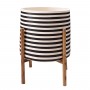 Η γλάστρα εσωτερικού χώρου (κασπό) RENTIL είναι κατασκευασμένη από Fiber Cement σε ΛΕΥΚΟ και ΜΑΥΡΟ χρώμα σε ρίγες. Το ιδιαίτερο χαρακτηριστικό της είναι ότι συνοδεύεται και τοποθετείται σε μια χαμηλή χιαστί βάση από ξύλο teak. Συνιστάται η τοποθέτηση εσωτερικού δοχείου εάν πρόκειται να την χρησιμοποιήσετε με νερό!