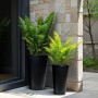 Η ONYX Γλάστρα Set 2τμχ, σε μαύρο matte κεραμικό, φέρνει απόλυτη minimal κομψότητα. Η ψηλή και λεπτή γραμμή της δίνει ύψος και αρχιτεκτονική δομή στο χώρο, ιδανική για φυτά με «κάθετη» ανάπτυξη, όπως φίκους, φτέρες ή pampas. Το μαύρο χρώμα λειτουργεί ως ουδέτερος καμβάς που αναδεικνύει το πράσινο των φυτών, δίνοντας premium και σύγχρονη αισθητική. Διάσταση μεγάλου:32,5x32,5xH53,5cm, Διάσταση μικρού:25,5x25,5xH48,5cm
