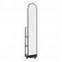 Αυτός ο έξυπνος και κομψός καθρέφτης δαπέδου αποτελεί μια ιδανική λύση για την οργάνωση και την εξοικονόμηση χώρου. Με τον ψηλό, οβάλ καθρέφτη στην μπροστινή όψη, προσφέρει μια ολοκληρωμένη εικόνα για την καθημερινή σας εμφάνιση. Το μοναδικό χαρακτηριστικό του είναι η περιστρεφόμενη βάση, η οποία αποκαλύπτει έναν πρακτικό αποθηκευτικό χώρο στο πίσω μέρος. Αυτός ο χώρος διαθέτει πολλαπλά ράφια, ιδανικά για την τακτοποίηση παπουτσιών, τσαντών, αξεσουάρ ή άλλων προσωπικών αντικειμένων, βοηθώντας σας να διατηρήσετε τον χώρο σας τακτοποιημένο.