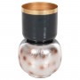 Το διακοσμητικό επιτραπέζιο βάζο LINGON είναι εξολοκλήρου μεταλλικό και αποτελείται από δύο μέρη. Την σχεδόν σφαιρική βάση και το βάζο με το μεγάλο στόμιο κολλημένο επάνω στην βάση. Το χρώμα του είναι ΜΠΛΕ ΑΝΘΡΑΚΙ με ΧΡΥΣΟ περιμετρικά στο στόμιο, ενώ η βάση είναι ΜΠΛΕ ΑΝΘΡΑΚΙ με brushed ΑΣΗΜΙ θολό χρώμα με θολό κόκκινο πουά χρωματισμό. Αυτό το βάζο θα ομορφύνει κάθε χώρο είτε στο σπίτι είτε στον επαγγελματικό σας χώρο.