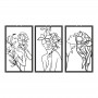 Ανανεώστε την αισθητική του χώρου σας με το σετ Witho. Τρία παραλληλόγραμμα μεταλλικά κάδρα που απεικονίζουν τη γυναικεία σιλουέτα να «ανθίζει», με λουλούδια να μπλέκονται αρμονικά στα μαλλιά και το σώμα. Είναι μια ωδή στην εσωτερική ομορφιά και την αυτοπεποίθηση.
