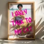 Ο πίνακας Catem είναι ένα εντυπωσιακό και χιουμοριστικό statement piece, ιδανικό για όσους αγαπούν τις γάτες και την μοντέρνα τέχνη. Συνδυάζει την κλασική τέχνη με το σύγχρονο design. Μια κλασική αναπαραγωγή πορτρέτου γυναίκας σε vintage ενδυμασία, καθισμένη με μια γάτα στα πόδια της. Η φράση "I ONLY TALK TO MY CAT" (Μιλάω μόνο στη γάτα μου) εμφανίζεται σε έντονα, ροζ γράμματα πάνω από την κεντρική φιγούρα. Το μήνυμα είναι μια χαριτωμένη, υπερβολική αναφορά στην αγάπη για τα κατοικίδια, προσδίδοντας χιούμορ και μια ανάλαφρη διάθεση στον χώρο.
