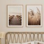 Ο πίνακας Neganto είναι ένα κομψό, ήρεμο και μινιμαλιστικό δίπτυχο (ζεύγος πινάκων) που συγκρούει την φωτογραφία τοπίου με τη σύγχρονη σκανδιναβική αισθητική. Απεικονίζονται δύο πίνακες με θέμα τη φύση σε γήινους, μονοχρωματικούς τόνους: ο ένας δείχνει έναν ξύλινο προβλήτα που χάνεται στην ομίχλη και ο άλλος ένα κοντινό πλάνο ξηρών φυτών. Διατηρούνται τα κλασικά στοιχεία της φωτογραφίας τοπίου, ενώ ο συνδυασμός των δύο πλάνων σε ζεστούς, μπεζ και καφέ τόνους προσδίδει μια αίσθηση γαλήνης και Boho Chic. Είναι ιδανικό για να λειτουργήσει ως το κεντρικό σημείο εστίασης πάνω από έπιπλα, προσδίδοντας κομψότητα, ηρεμία και έναν minimal/Chic τόνο.