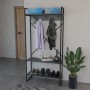 Σχεδιασμένο για να καλύπτει όλες τις καθημερινές σας ανάγκες, το έπιπλο αυτό προσφέρει μια ολοκληρωμένη λύση αποθήκευσης. Κρεμάστε άνετα τα παλτό, τα κασκόλ και τις τσάντες σας στους ενσωματωμένους γάντζους, τοποθετήστε τα παπούτσια σας τακτοποιημένα στο κάτω ράφι και χρησιμοποιήστε τα πάνω ράφια για να προσθέσετε την προσωπική σας πινελιά με διακοσμητικά αντικείμενα ή βιβλία.