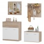 Το σετ εισόδου DIONNE αποτελείται από μια παπουτσοθήκη με συρτάρι, άλλη μία μικρότερη παπουτσοθήκη ίδιας αισθητικής, μια κρεμάστρα με 3 θέσεις κρέμασης και ραφάκι, κι έναν καθρέπτη τοίχου. Όλα τα κομμάτια του σετ είναι κατασκευασμένα από μελαμίνη σε αποχρώσεις ΣΟΝΑΜΑ και ΛΕΥΚΟ.