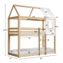 Η παιδική κουκέτα HOOD σε διάσταση για στρώματα 90x190εκ, είναι κατασκευασμένη από ξύλο πεύκου σε ΦΥΣΙΚΟ χρώμα. Η κουκέτα που πατάει απευθείας στο πάτωμα, διαθέτει περιμετρικά κάγκελα στο επάνω κρεβάτι και σκάλα πρόσβασης, ενώ τα στρώματα τοποθετούνται σε τάβλες από κόντρα-πλακέ ξυλεία. Η κουκέτα έχει σχήμα σπιτάκι και μάλιστα το επάνω κρεβάτι έχει κι ένα παραθυράκι που θα εξάψει την φαντασία των παιδιών.