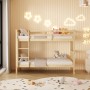Η παιδική κουκέτα LANTAI σε διάσταση για στρώματα 90x190εκ, είναι κατασκευασμένη από ξύλο πεύκου σε ΦΥΣΙΚΟ χρώμα. Η κουκέτα με τα ψηλά σχετικά πόδια, διαθέτει περιμετρικά κάγκελα και σκάλα πρόσβασης στο επάνω κρεβάτι, ενώ τα στρώματα τοποθετούνται σε τάβλες από κόντρα-πλακέ ξυλεία.