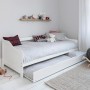Ο καναπές-κρεβάτι TRADDY είναι ιδανικός για το παιδικό δωμάτιο αφού διαθέτει και δεύτερο συρόμενο κρεβάτι που βγαίνει κάτω από τον καναπέ, ενώ τα στρώματα τοποθετούνται σε τάβλες από κόντρα-πλακέ ξυλεία.