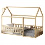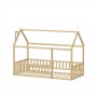 Σας παρουσιάζουμε το καινούργιο παιδικό κρεβάτι HOUSER. Είναι σε διάσταση για μονό στρώμα 90x190 εκ, και αποτελεί μια άριστης ποιότητας, κλασική και ασφαλή επιλογή για το παιδικό δωμάτιο μιας και είναι τύπου Montessori, που σημαίνει ότι έχει σχεδιαστεί σύμφωνα με το εκπαιδευτικό σύστημα Montessori, σύμφωνα με το οποίο τα παιδιά μαθαίνουν καλύτερα, όταν επιλέγουν μόνα τους τι θα κάνουν. Το χαμηλό ύψος κρεβατιού χωρίς πόδια, βοηθά να εξερευνούν την αυτονομία τους και να ανεβοκατεβαίνουν από το κρεβάτι τους ελεύθερα ανά πάσα στιγμή. Είναι ξύλινο σε ΦΥΣΙΚΟ χρώμα βαμμένο με αβλαβές μη τοξικό βερνίκι με βάση το νερό, ιδανικό για παιδιά. Το στρώμα τοποθετείται σε τάβλες κατασκευασμένες από ξυλεία κόντρα πλακέ. Όλο το κρεβάτι έχει σχήμα σπιτιού με καμινάδα που θα δώσει μια ευχάριστη, «ζεστή», και παιχνιδιάρικη όψη σε κάθε παιδικό δωμάτιο, ενώ διαθέτει κάγκελα περιμετρικά.