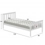 Το παιδικό κρεβάτι GIMLY σε διάσταση για στρώμα 90x190 εκ, είναι κατασκευασμένο από ξύλο πεύκου σε ΛΕΥΚΟ χρώμα, με ψηλά πόδια, ενώ το στρώμα τοποθετείται σε τάβλες από κόντρα-πλακέ ξυλεία.