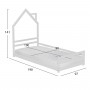 Το παιδικό κρεβάτι HOUSER τύπου Montessori σε διάσταση για στρώμα 90x190εκ, είναι κατασκευασμένο από ξύλο πεύκου σε ΛΕΥΚΟ χρώμα. Tο κεφαλάρι έχει σχήμα σπιτιού με καμινάδα και τα πόδια είναι εξαιρετικά χαμηλά, ενώ το στρώμα τοποθετείται σε τάβλες από κόντρα-πλακέ ξυλεία.