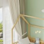 Τα στρώματα τοποθετούνται σε τάβλες κατασκευασμένες από ξυλεία κόντρα πλακέ. Ολόκληρο το κρεβάτι έχει σχήμα σπιτιού και μάλιστα αρκετά ψηλό, που θα δώσει μια ευχάριστη, «ζεστή», και παιχνιδιάρικη όψη σε κάθε παιδικό δωμάτιο.