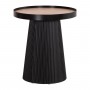 Το βοηθητικό τραπέζι DENTON είναι στρογγυλό και σχετικά ψηλό, σε χρώμα ΜΑΥΡΟ. Η επιφάνειά του είναι από MDF σε χρωματισμό ΦΥΣΙΚΟΥ ΞΥΛΟΥ μονταρισμένη σε έναν μεταλλικό δίσκο με υπερυψωμένη περίμετρο, ενώ η βάση του είναι κωνική κατασκευασμένη εξολοκλήρου από MDF, με όμορφες πτυχώσεις. Ιδανικό για πληθώρα χώρων χάρη στην πρακτικότητά του.