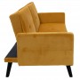 Τεχνικά χαρακτηριστικά: *Κατασκευασμένος εσωτερικά από ενισχυμένο σκελετό για μεγαλύτερη αντοχή στο βάρος και με διάρκεια στον χρόνο. *Φέρει εύχρηστο μεταλλικό μηχανισμό «click-clack» που με μία μόνο κίνηση μετατρέπει τον καναπέ σε κρεβάτι και το αντίστροφο. *Η πλάτη μπορεί να ανακλιθεί σ’ ολόκληρο τον καναπέ ή η μισή, επίσης μπορεί να σταθεί και σε μία ενδιάμεση θέση για περισσότερες στιγμές χαλάρωσης. *Φέρει κουμπωτό μπράτσο που μπορεί να βγει σε περίπτωση που το επιθυμείτε. *Επένδυση με ύφασμα βελούδο υψηλής ποιότητας που παρέχει ανθεκτικότητα, προσφέρεται σε κίτρινο χρώμα. *Φέρει εξτρά σκαμπό που αποτελεί προέκταση του καναπέ ανάλογα με τις ανάγκες του χώρου σας. *Ο καναπές διαθέτει κομψά ξύλινα πόδια για την καλύτερη δυνατή στήριξη και την προστασία του πατώματος από ανεπιθύμητες φθορές.