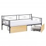 Πρόκειται για μια αμιγώς μεταλλική κατασκευή σε ΜΑΥΡΟ χρώμα που μπορεί άνετα να σταθεί και να συνδυαστεί με πληθώρα διακοσμητικών μοτίβων σε κάθε χώρο. Η πλάτη είναι μεταλλική με συμμετρικά μεταλλικά σχέδια ενώ και τα μπράτσα είναι παρόμοιας αισθητικής. Δεν διαθέτει τάβλες για την στήριξη του στρώματος αλλά μεταλλικές ράβδους. Η πρακτικότητά του τονίζεται ακόμα περισσότερο χάρη στα δύο συρτάρια δαπέδου με ροδάκια, που τοποθετούνται κάτω από το κρεβάτι, και διαθέτουν όμορφη πρόσοψη μελαμίνης σε SONAMA χρώμα. Πρόκειται για μια ιδανική επιλογή τόσο για το υπνοδωμάτιό σας, όσο και για επαγγελματικούς χώρους, όπως ξενοδοχεία και Airbnb.