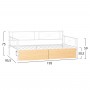 Πρόκειται για μια αμιγώς μεταλλική κατασκευή σε ΛΕΥΚΟ χρώμα που μπορεί άνετα να σταθεί και να συνδυαστεί με πληθώρα διακοσμητικών μοτίβων σε κάθε χώρο. Η πλάτη είναι μεταλλική με συμμετρικά μεταλλικά σχέδια ενώ και τα μπράτσα είναι παρόμοιας αισθητικής. Δεν διαθέτει τάβλες για την στήριξη του στρώματος αλλά μεταλλικές ράβδους. Η πρακτικότητά του τονίζεται ακόμα περισσότερο χάρη στα δύο συρτάρια δαπέδου με ροδάκια, που τοποθετούνται κάτω από το κρεβάτι, και διαθέτουν όμορφη πρόσοψη μελαμίνης σε SONAMA χρώμα. Πρόκειται για μια ιδανική επιλογή τόσο για το υπνοδωμάτιό σας, όσο και για επαγγελματικούς χώρους, όπως ξενοδοχεία και Airbnb.