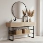 Αναβαθμίστε τον χώρο σας με αυτή την κομψή και λειτουργική κονσόλα, ιδανική για την είσοδο, το σαλόνι ή το χωλ σας. Συνδυάζοντας ζεστή ξύλινη επιφάνεια με ανθεκτικό μεταλλικό σκελετό σε μαύρο ματ, προσφέρει ένα μοντέρνο βιομηχανικό στυλ που ταιριάζει αρμονικά σε κάθε σύγχρονη διακόσμηση.