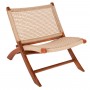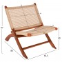 Η καρέκλα FERM είναι μια καρέκλα σχετικά κοντή χωρίς μπράτσα, αλλά με όμορφο design. Το κύριο χαρακτηριστικό αυτής της καρέκλας είναι ότι «διπλώνει» και αποθηκεύεται εύκολα πιάνοντας λίγο χώρο. Ο σκελετός της είναι από ποιοτικό ξύλο, ενώ τόσο η χαμηλή πλάτη όσο και το φαρδύ κάθισμα είναι κατασκευασμένα από σχοινί VIRO άριστης ποιότητας. Το ξύλο έχει το φυσικό του χρώμα που μπορεί άνετα να συνδυαστεί με διάφορα διακοσμητικά μοτίβα. Η καρέκλα θα αποτελέσει το κέντρο ενδιαφέροντος οπουδήποτε και αν τοποθετηθεί.