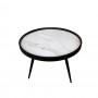 Το στρογγυλό τραπεζάκι σαλονιού Marm σε λευκό χρώμα με εφέ μαρμάρου και μεταλλικά πόδια αποτελεί μια κομψή και μοντέρνα προσθήκη για κάθε χώρο. Η επιφάνειά του είναι κατασκευασμένη από mdf με εφέ λευκού μαρμάρου, προσδίδοντας μια αίσθηση πολυτέλειας και κομψότητας. Τα τρία μεταλλικά πόδια του τραπεζιού προσφέρουν σταθερότητα και αντοχή, ενώ το μαύρο τους χρώμα ταιριάζει απόλυτα με την επιφάνεια, δημιουργώντας μια ομοιόμορφη και εντυπωσιακή εμφάνιση. Το τραπεζάκι σαλονιού Marm μπορεί να χρησιμοποιηθεί μόνο του ώς κεντρικό τραπεζάκι στο σαλόνι μπροστά απο τον καναπέ, ή σε συνδυασμό με το βοηθητικό τραπεζάκι Marm, δημιουργώντας δύο επίπεδα, για μεγαλύτερη πρακτικότητα και στύλ.