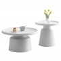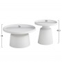 Αυτό το σετ 2 τραπεζιών για το σαλόνι είναι πανέμορφο και πρακτικότατο. Πρόκειται για 2 εξολοκλήρου μεταλλικά τραπεζάκια στρογγυλά διαφορετικών μεγεθών σε ΛΕΥΚΟ χρώμα. Το ένα έχει κωνική βάση που καταλήγει σε όμορφο «λαιμό», και το άλλο έχει κυλινδρική σχεδόν βάση. Ιδανικά τόσο για το σπίτι, όσο και για επαγγελματικούς χώρους.