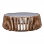 Αναβαθμίστε την αισθητική του σαλονιού σας με αυτό το εντυπωσιακό στρογγυλό τραπεζάκι σαλονιού. Η κομψή του σχεδίαση συνδυάζει την πολυτελή αίσθηση της λευκής μαρμάρινης επιφάνειας με τη ζεστή, φυσική υφή της ξύλινης βάσης.