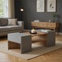 Συνδυασμός διαφορετικών χρωμάτων για ένα εντυπωσιακό αποτέλεσμα: το κεντρικό τραπεζάκι σε oak - τα πλαινά σε όψη μπεζ μαρμάρου