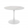 Το τραπέζι ροτόντα Snow είναι μια εξαιρετική επιλογή για όσους εκτιμούν την κομψότητα και την καθαρότητα του μοντέρνου σχεδιασμού. Διαθέτει επιφάνεια που κατασκευάζεται από sintered stone, η οποία είναι θερμικά συμπιεσμένη και δημιουργεί μια στερεή, αδιάβροχη μάζα, ανθεκτική σε γρατσουνιές και λεκέδες. Αυτό το υλικό προσφέρει επίσης πρόσθετα πλεονεκτήματα, όπως δεν επηρεάζεται από τις καιρικές συνθήκες, είναι ανθεκτικό στη ζέστη και το κρύο, αδιάβροχο, ανοξείδωτο, δύσκολο να κοπεί ή να καταστραφεί, εύκολο στο καθάρισμα, ασφαλές για τα τρόφιμα, μη πορώδες, δεν απορροφά επιβλαβείς ουσίες, ενώ είναι και ελαφρύ και ανακυκλώσιμο. Η βάση του τραπεζιού, κατασκευασμένη από μέταλλο επίσης σε λευκή απόχρωση, εξασφαλίζει σταθερότητα και ολοκληρώνει την αρμονική αισθητική του. Το Snow είναι ιδανικό για τραπεζαρίες, καθιστικά ή επαγγελματικούς χώρους, προσφέροντας minimal design και πολυτέλεια που ταιριάζει σε κάθε σύγχρονη διακόσμηση.