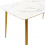 Τεχνικά χαρακτηριστικά : * Επιφάνεια κατασκευασμένη από γυαλί 8mm λευκό μαρμάρου για ένα καλαίσθητο αποτέλεσμα. * Στήριξη σε τέσσερα πόδια κατασκευασμένα από μέταλλο χρώματος χρυσού υψηλής ανθεκτικότητας στον χρόνο.