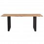 Η επιφάνεια κατασκευάζεται από μασίφ φυσικό ξύλο ακακίας υψηλής ποιότητας, με αντοχή στην καταπόνηση και στον χρόνο. Το ξύλο ακακίας είναι σκληρό και ανθεκτικό στη φθορά, κάνοντάς το κατάλληλο για επίπλωση και χρήση σε εξωτερικούς χώρους. Είναι γνωστό για την ανθεκτικότητά του, την ομορφιά που προσφέρει το φυσικό του χρώμα και την αντοχή του. Χρησιμοποιείται ευρέως στην κατασκευή επίπλων, δαπέδων, επιφανειών εργασίας και εξωτερικών δομών όπως κήποι και μπαλκόνια. Κάθε κομμάτι αποτελεί και ένα έργο τέχνης, καθώς είναι μοναδικό λόγω της ιδιαίτερης ανομοιομορφίας του κορμού του δέντρου. Μπορεί να φέρει ή να δημιουργήσει ρωγμές στη πορεία του χρόνου (που οφείλονται στην συστολή και διαστολή του μασίφ ξύλου που είναι ζωντανός οργανισμός) και που το καθιστούν ακόμη πιο πρωτότυπο και ιδιαίτερο. Κατά τη διαδικασία παραγωγής πραγματοποιείται επεξεργασία και ομοιομορφία των υπαρχόντων ρωγμών με υλικό κατασκευής από το ίδιο ξύλο. Επομένως, κάθε κομμάτι μπορεί να φέρει μικρές παραλλαγές στην χρωματική τονικότητα και τις διαστάσεις λόγω της φυσικότητας του κορμού του δέντρου. Όλα τα παραπάνω είναι απολύτως φυσικά για μασίφ ξύλο και δεν αποτελούν ελάττωμα του προϊόντος.