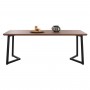 Το JAY είναι ένα μεγάλο ορθογώνιο τραπέζι για την τραπεζαρία, με επιφάνεια από MDF με καπλαμά καρυδιάς σε χρώμα σκούρο ΚΑΡΥΔΙ και σε στυλ ρουστίκ. Η επιφάνεια αυτή είναι «φαλτσοκομμένη»(δεν είναι δηλαδή τετραγωνισμένη) και στηρίζεται σε έναν μαύρο μεταλλικό σκελετό\πλαίσιο με πόδια σε μοντέρνα γεωμετρία. Πρόκειται για ένα επιβλητικό τραπέζι σε μεγάλη διάσταση και με όμορφη διχρωμία, με αποτέλεσμα να μπορεί να ταιριάξει αισθητικά σχεδόν σε κάθε ανάλογο χώρο.