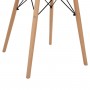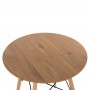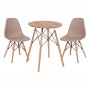 Ένα στρογγυλό τραπέζι με πόδια οξιάς σε ΦΥΣΙΚΟ χρώμα και MDF επιφάνεια σε χρώμα φυσικού ξύλου, και 2 καρέκλες με ενιαία πλάτη και κάθισμα από πολυπροπυλένιο σε ΚΑΠΟΥΤΣΙΝΟ χρώμα και πόδια οξιάς σε φυσικό χρώμα.