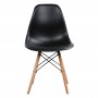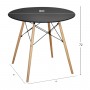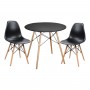 Ένα στρογγυλό τραπέζι με πόδια οξιάς σε ΦΥΣΙΚΟ χρώμα και MDF επιφάνεια σε ΜΑΥΡΟ χρώμα, και 2 καρέκλες με ενιαία πλάτη και κάθισμα από πολυπροπυλένιο σε ΜΑΥΡΟ χρώμα και πόδια οξιάς σε φυσικό χρώμα.