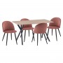 Ένα ορθογώνιο τραπέζι με ΜΑΥΡΑ μεταλλικά πόδια και φαλτσοκομμένη MDF επιφάνεια σε χρώμα SONAMA, και 4 καρέκλες επενδυμένες με εντυπωσιακό ΣΑΠΙΟ ΜΗΛΟ βελούδο και μεταλλικά πόδια σε ΜΑΥΡΟ χρώμα.