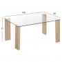 Ένα ορθογώνιο τραπέζι με πόδια από MDF σε SONAMA χρώμα και γυάλινη επιφάνεια, και 4 καρέκλες με πόδια μεταλλικά με όψη ξύλου και κάθισμα με επένδυση από καφετί ύφασμα.