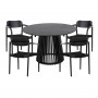 Αυτό το σετ τραπεζαρίας εσωτερικού χώρου 5τμχ αποτελείται από ένα στρογγυλό τραπέζι FRANTZ κατασκευασμένο εξολοκλήρου από ξύλο MINDI σε ΜΑΥΡΟ χρώμα, και από 4 καρέκλες τραπεζαρίας OSLO κατασκευασμένες εξολοκλήρου από ξύλο teak με κάθισμα από σχοινί σε ΜΑΥΡΟ χρώμα.