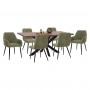 HΜ11912---Σετ τραπεζαρίας με τραπέζι, 4 καρέκλες και 2 πολυθρόνες. Το επιβλητικό ορθογώνιο τραπέζι, που αποτελεί μια από τις καινούργιες προσθήκες στην γκάμα μας, διαθέτει επιφάνεια από MDF με καπλαμά καρυδιάς σε χρώμα ΚΑΡΥΔΙ σε στυλ ρουστίκ. Η επιφάνεια αυτή στηρίζεται σε μια μαύρη διάταξη με μεταλλικά διπλοχιαστί πόδια. Οι καρέκλες και οι πολυθρόνες με αναπαυτικό σχεδιασμό και ζεστό ύφασμα TEDDY, είναι σε ΦΥΣΤΙΚΙ απόχρωση, ενώ τα πόδια τους είναι μαύρα. Το αποτέλεσμα είναι ένας αχτύπητος συνδυασμός για την τραπεζαρία σας.