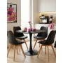 Με την εμβληματική, καμπυλωτή βάση και την λεία, στρογγυλή επιφάνεια, αυτό το τραπέζι αποτελεί ένα statement κομμάτι. Το μαύρο ματ φινίρισμα προσθέτει μια δόση πολυτέλειας, ενώ η συμπαγής βάση εξασφαλίζει σταθερότητα και ελευθερία κινήσεων γύρω από το τραπέζι. Τεχνικά χαρακτηριστικά τραπεζιου: