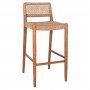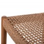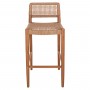 Το σκαμπό μπαρ ROSCO με το ψηλό κάθισμα διαθέτει σκελετό από ποιοτικό ξύλο σε ΚΑΡΥΔΙ χρώμα, ενώ τόσο η κοντή πλάτη όσο και το φαρδύ κάθισμα αποτελούνται από αριστοτεχνικά πλεγμένο VIRO σχοινί σε ΚΑΦΕ χρώμα. Οι σχεδιαστικές γραμμές είναι κομψές και με γνώμονα την άνεση του χρήστη, με χαρακτηριστικό παράδειγμα την ύπαρξη των συνδέσεων των ποδιών του σκαμπό, που χρησιμεύουν και ως υποπόδια.