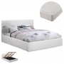 •Το κρεβάτι BOBBI έχει λιτό σχεδιασμό και καθαρές γραμμές χωρίς σχέδια, σε διάσταση για στρώμα 150x200εκ που είναι επαρκέστατα άνετο για να χωρέσουν δύο άτομα. Έχει σχετικά ψηλό κεφαλάρι, ενώ ολόκληρη η επένδυσή του έχει γίνει με εξαιρετικής ποιότητας PU leather σε ΛΕΥΚΟ χρώμα, δίνοντας μια αίσθηση καθαρότητας «φωτίζοντας» τον χώρο. Το στρώμα «κάθεται» πάνω σε ένα τελάρο με δύο σειρές από ανατομικές τάβλες, το οποίο ανασηκώνεται (αφού πρώτα αφαιρέσετε το στρώμα) με μεταλλικό μηχανισμό ασφαλείας με 2 αμορτισέρ, προσφέροντας έναν μεγάλο αποθηκευτικό χώρο, ο οποίος φυσικά καταλαμβάνει όλο τον χώρο μέχρι το δάπεδο.