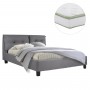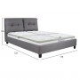 Το υπέρδιπλο κρεβάτι BILLIE είναι επενδυμένο με ποιοτικό ύφασμα σε ΓΚΡΙ χρώμα με δύο καπιτονέ μαξιλάρια στο κεφαλάρι. Το στρώμα που συνοδεύει το κρεβάτι τοποθετείται σε δύο σειρές ανατομικές τάβλες, είναι μονής όψης και είναι τεχνολογίας continuous spring με ενσωματωμένο ανώστρωμα pillow-top. Τα πόδια είναι σχετικά ψηλά από πολυπροπυλένιο σε μαύρο χρώμα.