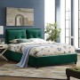 Το υπέρδιπλο κρεβάτι BILLIE είναι επενδυμένο με όμορφο βελούδο σε ΚΥΠΑΡΙΣΣΙ χρώμα με δύο καπιτονέ μαξιλάρια στο κεφαλάρι. Το στρώμα που συνοδεύει το κρεβάτι τοποθετείται σε δύο σειρές ανατομικές τάβλες, είναι μονής όψης και είναι τεχνολογίας continuous spring με ενσωματωμένο ανώστρωμα pillow-top. Τα πόδια είναι σχετικά ψηλά από πολυπροπυλένιο σε μαύρο χρώμα.