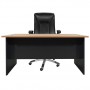 Επιφάνεια εργασίας από μελαμίνη πάχους 25mm στο χρώμα οξιάς, με δύο εισόδους καλωδίων πάνω από τα πόδια. Πόδια μελαμίνης πάχους 18mm σε χρώμα γκρί.