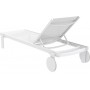 Casablanca ξαπλώστρα του οίκου Siesta από υψηλής ποιότητας αλουμίνιο & πολυπροπυλένιο με ενίσχυση από υαλώδεις ίνες (fiber glass) για απόλυτη αντοχή και polyester fabric Serge Ferrari.Είναι στοιβαζόμενη,έχει ρυθμιζόμενη πλάτη 5 θέσεων,αντιολισθητικά πέλματα εμπρός και ρόδες από καουτσούκ.Πιστοποιημένο προϊόν από τον Ιταλικό οίκο CATAS.