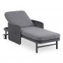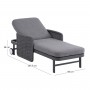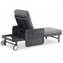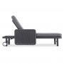 Σας παρουσιάζουμε μια πολυτελή ξαπλώστρα αλουμινίου της σειράς DESTINY. Μια σειρά που, μαζί με άλλες, ανεβάζει τον πήχη της ποιότητας και της αισθητικής που προσφέρουμε σε εσάς, τόσο για το σπίτι, όσο και για κάθε ανάλογο επαγγελματικό χώρο! Με απαράμιλλη ποιότητα κατασκευής και υλικών, θα αναβαθμίσει την εικόνα σε όποιο χώρο επιθυμείτε. Ο σκελετός αυτής της ξαπλώστρας είναι σε ΑΝΘΡΑΚΙ χρώμα, ενώ τα μπράτσα της είναι επενδυμένα με rattan σε πλέξη wicker σε ΓΚΡΙ χρώμα. Η ανάκλιση πραγματοποιείται με κλασική «σκαλιέρα» 4 θέσεων συν μία που είναι η οριζόντια. Το επάνω μέρος του στρώματος διαθέτει κορδόνια που δένονται με «χρατς» ενώ το κυρίως στρώμα «κολλάει» στην ξαπλώστρα επίσης με «χρατς», τα οποία βρίσκονται στο πανί textilene που λειτουργεί και ως βάση για το στρώμα. Τέλος, η ξαπλώστρα διαθέτει και 2 ρόδες για εύκολη μετακίνηση!