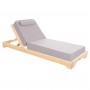 --Ολόκληρη η ξαπλώστρα έχει κατασκευαστεί από ξύλο πεύκου με εμποτισμό και επιπλέον στρώση με βερνίκι νερού. Το πεύκο είναι ένα μαλακό, λευκό ή ανοιχτό κίτρινο ξύλο το οποίο είναι ελαφρύ σε βάρος με ευθύγραμμα νερά ξύλου. Αντέχει στη συρρίκνωση, διόγκωση και κάμψη. Ο εμποτισμός υπό την ευρεία έννοια είναι ο χρωματισμός του ξύλου (συνήθως βερνίκια) με την μέθοδο της εμβάπτισης.