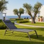 Τεχνικά χαρακτηριστικά: * Σταθερός σκελετός από υψηλής ποιότητας αλουμίνιο εποξειδικής βαφής ανθρακί χρώματος. * Επένδυση υφάσματος textinene 2x1 530gr ανθρακί χρώματος. Το textilene είναι ύφασμα μεγάλης αντοχής στην ηλιακή ακτινοβολία UV και την υγρασία, ενώ παράλληλα αφήνει το δέρμα να "αναπνέει" δημιουργώντας έτσι άνεση στην έδραση. * Διαθέτει πολλαπλές θέσεις ανάκλισης * Είναι στοιβαζόμενη για εύκολη μεταφορά και αποθήκευση.