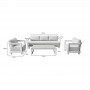 Η επένδυση των δύο πολυθρόνων και του 3θέσιου καναπέ είναι ύφασμα ασυναγώνιστης ποιότητας σε ανοιχτό γκρι.