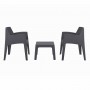 Ένα τετράγωνο τραπεζάκι και 2 στοιβαζόμενες πολυθρόνες, τα οποία είναι εξολοκλήρου κατασκευασμένα από πολυπροπυλένιο σε ΓΚΡΙ χρώμα. Σχεδιαστικά, είναι λιτό και μπορεί να χρησιμοποιηθεί με πολλούς τρόπους προσφέροντας πρακτική και ανθεκτική χρήση. Ιδανική πρόταση για χρήση σε εξωτερικούς χώρους, είτε επαγγελματικούς (χώροι δεξιώσεων, εταιρείες catering, κλπ.) είτε για το σπίτι.