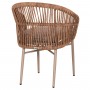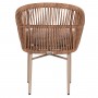 •Η πλάτη είναι από P.E. Rattan σε πλέξη. Δηλαδή, η πλέξη έχει γίνει με πολυεστερικές ίνες υψηλής ποιότητας και αντοχής ανθεκτικές σε ακραίες καιρικές συνθήκες ζέστης ή κρύου, που μοιάζουν με σχοινί.